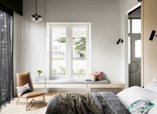 Merging Victorian heritage with cutting-edge design, Drift House is a unique hotel set on the waterfront of charming Port Fairy, on Australia’s Great Ocean Road. Award-winning architecture firm Multiplicity have sensitively preserved much of the original Victorian stone and detailing of this bluestone mansion, expertly blending the old with the startlingly modern, with perforated metal and walls of glass serving to extend and transform the property. This synergy of traditional and modern has given Drift House its idiosyncratic style, reinforced with the multitude of original artwork created and curated by the artist owner, Colleen Guiney.