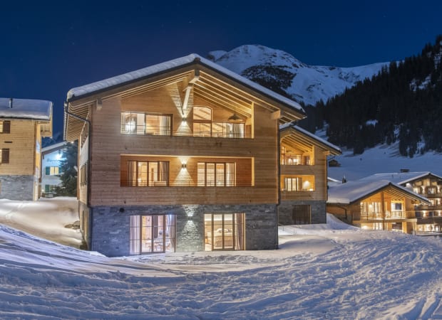 Part of the Chalech complex housing five superior chalets, Chalech M offers upscale accommodation close to both the chairlifts and centre of Lech. The sophisticated interiors display both wonderful attention to detail and design flair, with wood panelled walls, lavish fabrics and artful lighting. The elegant open plan living, dining and kitchen area is a stunning space with a statement central woodburning fireplace, while sliding doors open onto a cosy furnished deck, the ideal spot for drinking in the magnificent mountain views. Adjacent to the living area is a warm and homey TV snug, perfect for children and teens to relax after a day of mountain activities.