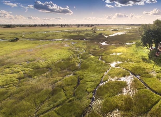 Duba Plains Camp is an unobtrusive camp surrounded by expanses of seasonally flooded plains and shaded by tall ebony, sycamore fig and mangosteen trees. Located on a tree-covered island in a 30,000-hectare concession known as the Kwedi Reserve, Duba Plains Camp is a beautiful intimate camp renowned for rewarding game-viewing with good populations of plains game, buffalo, resident prides of lion, leopard, elephant and wild dog.