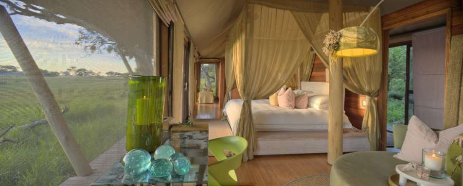 A beautiful light camp in the heart of the seasonal Okavango Delta. Each romantic, tented room has a plunge pool looking out over the floodplain.