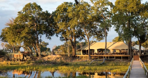 Kanana Camp sits on the Xudum river in the south west of Botswana's Okavango Delta, offering a comfortable tented base for their safari. Both land and water based activities are available here, from game drives and walks to mokoro trips and fishing.