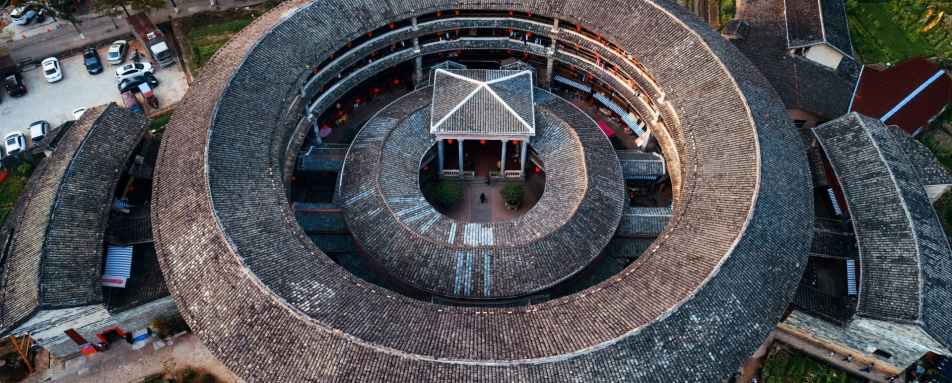 Set amongst rolling hills of tea and rice plantations, the Fujian Tulou is a series of traditional multi-story earth houses constructed between 15th and 20th centuries. They are known for their architectural design of inward looking floor plans to promote communal living, social cohesiveness and defence against invaders.