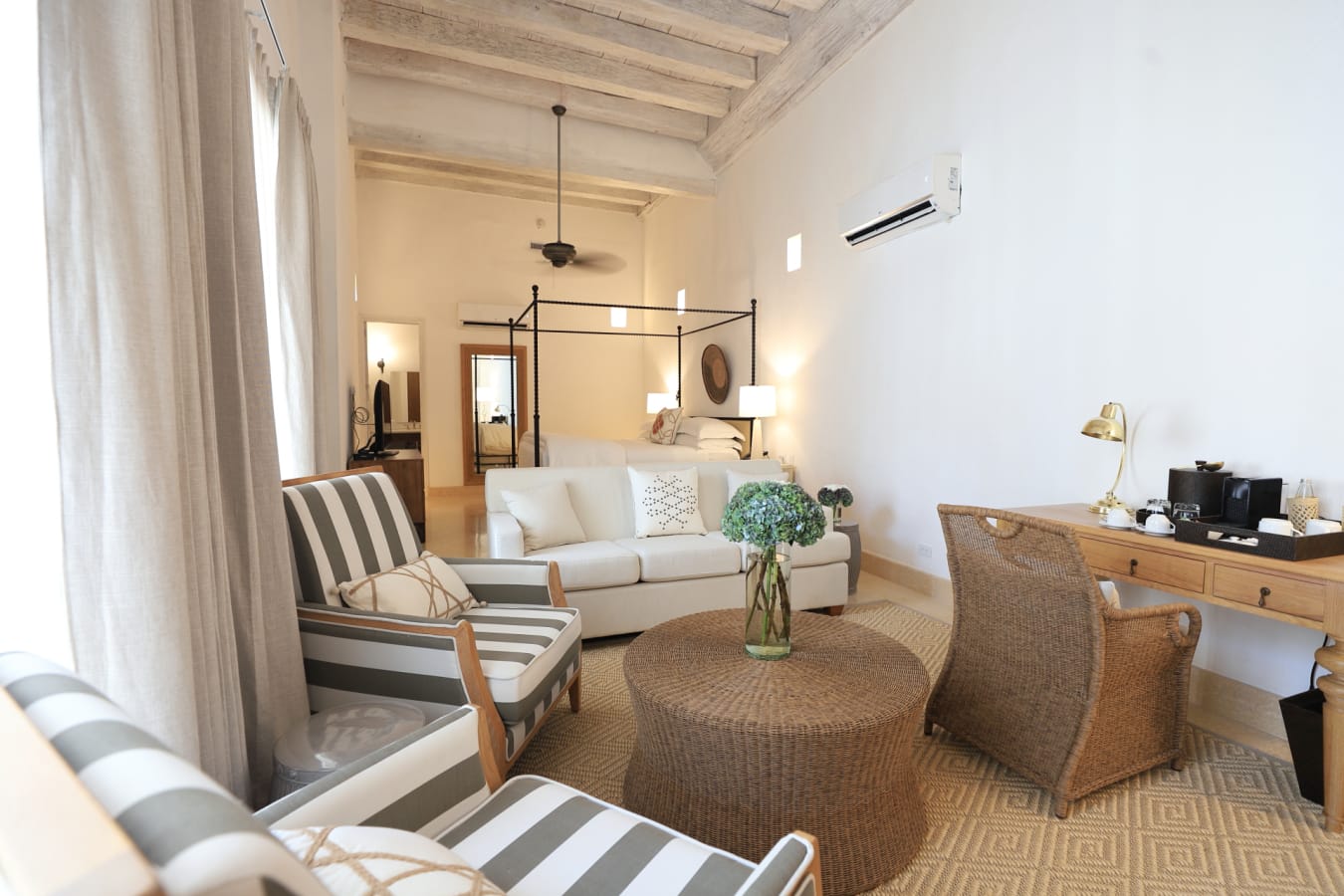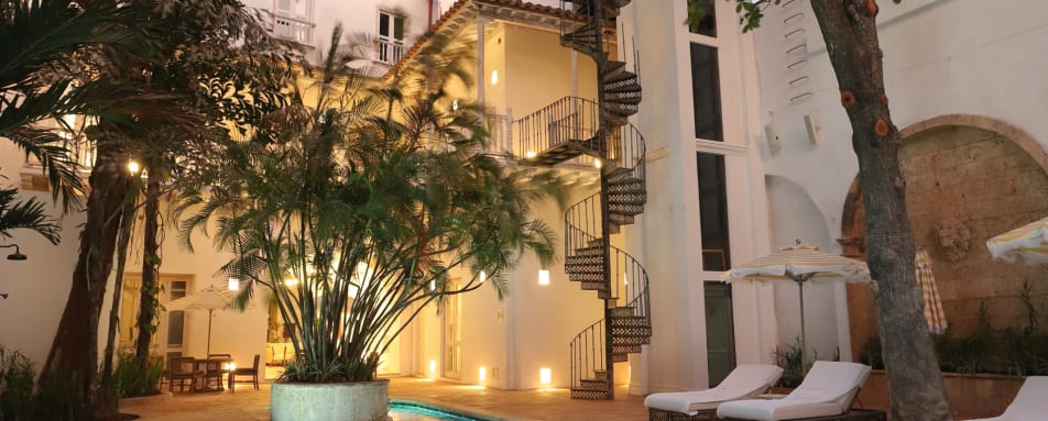 Originally built for the Count of Pestagua, this 18th century mansion has retained its handsome colonial architecture and original features. From whitewashed walls, to beamed ceilings, overhanging balconies, wrought iron fixtures and picturesque courtyard dotted with palms and lush greenery, this boutique hotel will impress. It’s romantic grandeur and timeless appeal, makes it easy to appreciate why it has been named, ‘the most beautiful house in Cartagena’. Located in the heart of the city, Casa Pestagua offers glorious views over Cartagena’s UNESCO-listed colonial walled city and fortress.