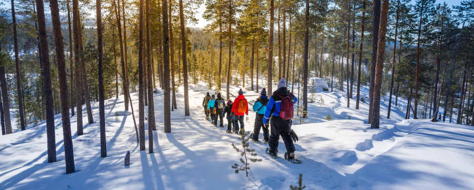 You will then be taken in to the wilderness, along some local trails, to fully immerse yourself in the beautiful scenery. You will trek through this winter wonderland enjoying the silence. During the trip, the guide will share interesting stories and information about Finnish nature and animals. On the way, we will stop to enjoy lunch and warm drinks by the open fire. This trip is perfect for photographers and nature lovers, as snowshoeing is a true eco-activity!