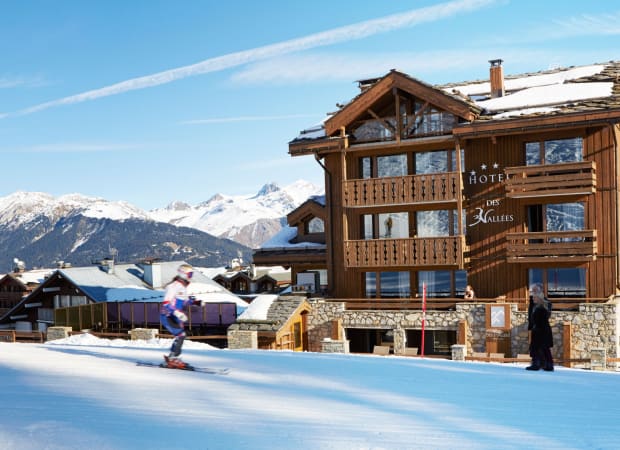 The Hotel des Trois Vallées is a ski-in ski-out chalet style hotel in the heart of Courchevel 1850. The 4* hotel features stylish rooms, cosy lounge and relaxed restaurant focused on using the best produce.