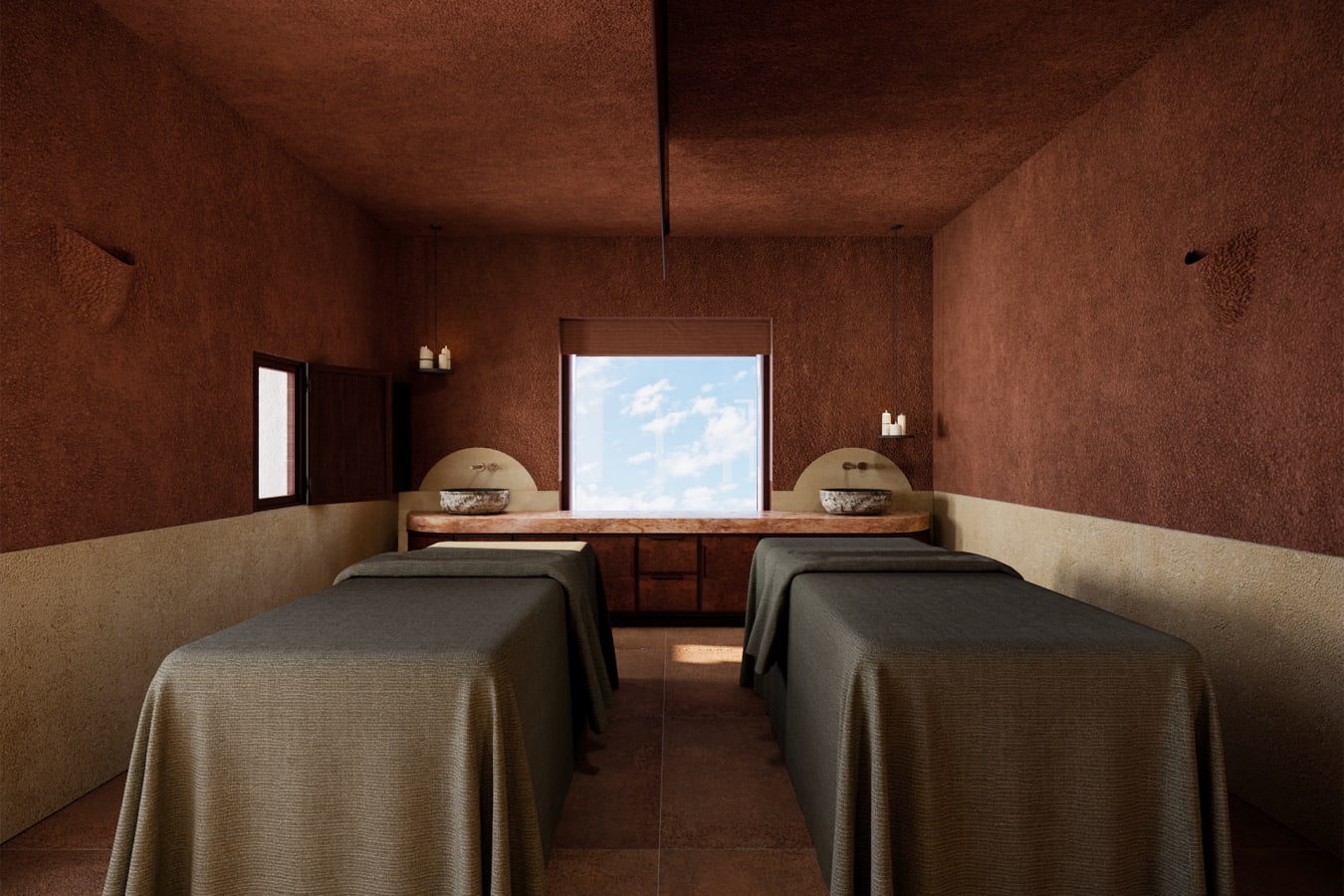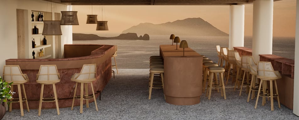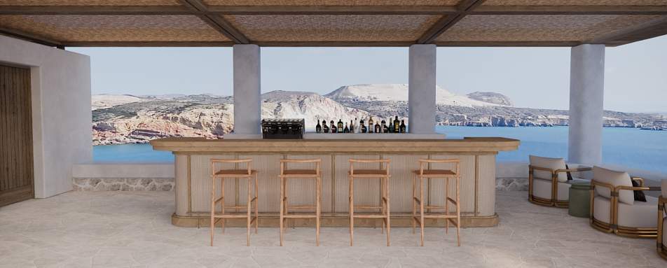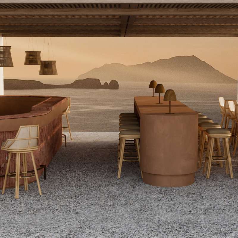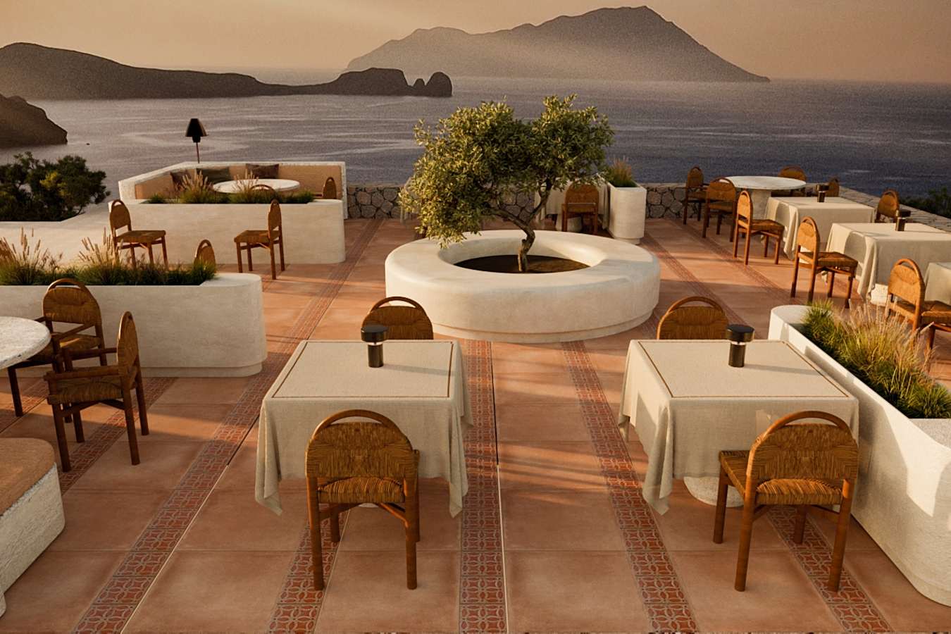 Design-led, LEED Gold–targeted retreat with interiors inspired by Milos’ volcanic landscape and mineral-rich terrain.