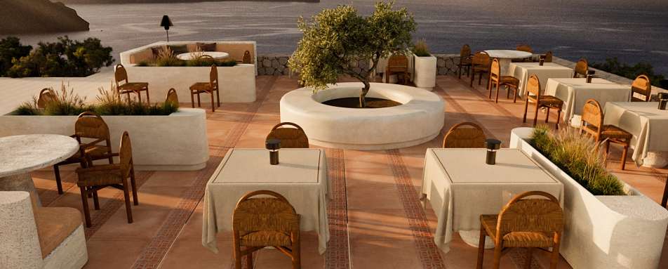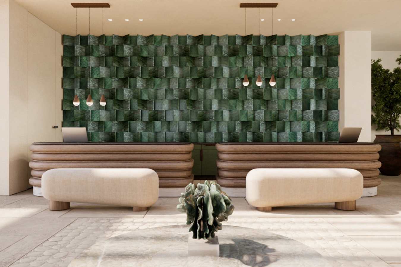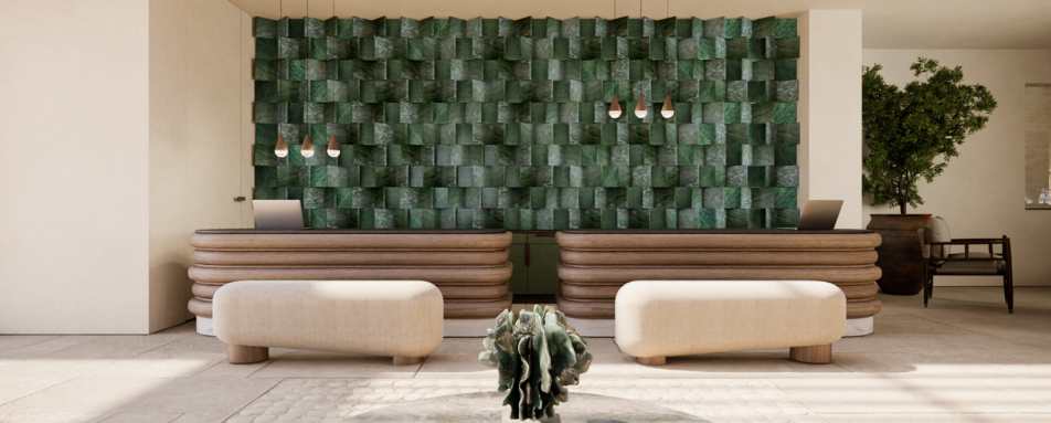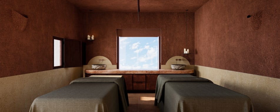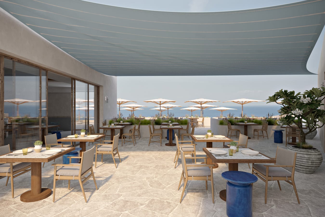 Design-led, LEED Gold–targeted retreat with interiors inspired by Milos’ volcanic landscape and mineral-rich terrain.