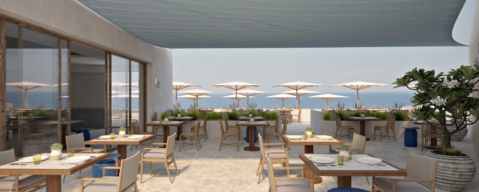 Elios Spa, infinity pool, and state-of-the-art fitness center, plus two restaurants by acclaimed Greek chef Yiannis Kioroglou.
