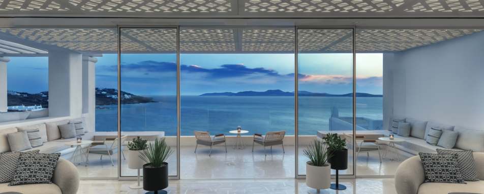 It is a 4-hour flight to Mykonos direct with Easyjet or BA from London, otherwise there are scheduled connecting flights via Athens. Mykonos Blu is a 15-minute transfer from the airport.