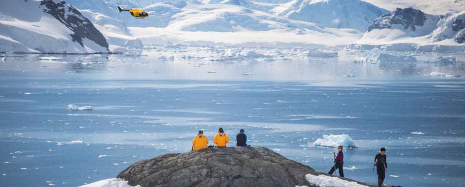 Embark on an exhilarating journey high above the Antarctic Peninsula. Join an intimate group of adventurers aboard one of Ultramarine's twin-engine helicopters for a trekking excursion to an area only accessible by air. The helicopter flight provides unforgettable views of the vast polar landscape below. Once on land, enjoy a refreshing walk, hike, or snowshoe trek (depending on conditions), with breathtaking vistas of remote ridgelines, glaciated terrain, and snow-capped peaks. This unique heli-adventure will leave you in awe of the Antarctic's stunning beauty.