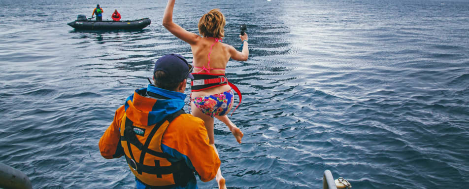 Plunging overboard into the icy ocean waters is a challenge that is hard to resist. Both invigorating and ultra-cold, this is an unforgettable experience. Those who rise to the challenge line up along the gangplank just in their swimwear and are attached to a safety rope. Then there’s nothing left to do but jump and enjoy the bracing chill for as long as you can stand. On returning to the gangplank, the crew will be waiting with towels and possibly a strong drink to help warm you back up.