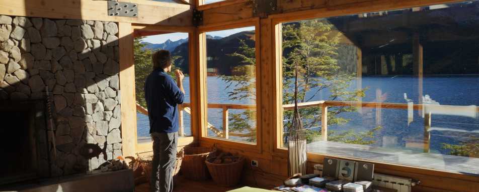 The six en-suite bedrooms are spacious and continue the natural feel. Some have lake views, others overlook the Vespignani glacier or the forest, and all come with organic amenities. The main living room has a stone-built fireplace and a balcony with views towards the lake, Mt Fitzroy and the forest. It is a lovely place to come back to and relax with a book or a glass of wine after a day spent exploring the many hiking trails, fishing for trout, mountain biking or kayaking. Once you reach the lodge, your host will be able to advise on which activities are most suitable on a given day.