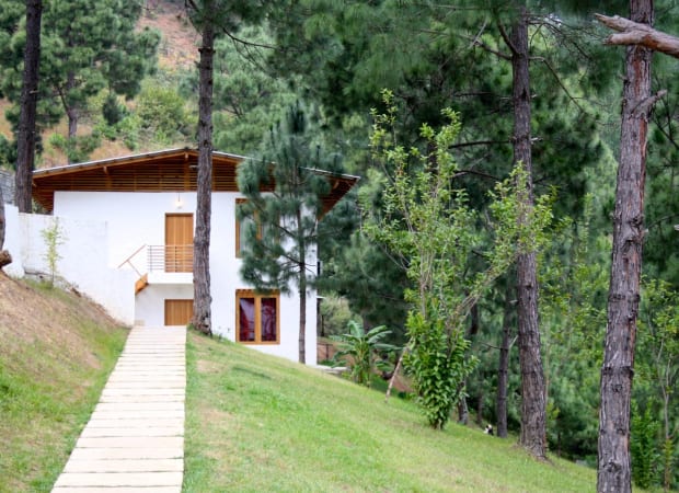 The resort overlooks the Punakha valley and is surrounded by pine Forrest.