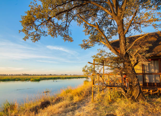 Kwando Lagoon Camp is a eight-room camp, lying on the shady banks of the Kwando River and set among tall and ancient African ebony and marula trees, overlooking the Kwando River with its resident pods of hippo, perfect for exploring by boat.