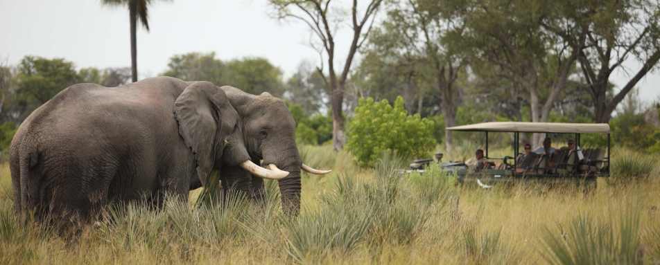 While the watery landscape is a paradise for birds, large game are also drawn to the watering holes, with elephant, antelope, lion, leopard, and kudu to be found on the larger islands.