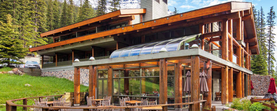 Moraine Lake is one of the most beautiful lakes in Canada and the lodge is tucked away making the most of this prime position. The lodge's architecture embraces the dramatic beauty of Banff National Park and its environmentally friendly nature makes it almost self sufficient as well.