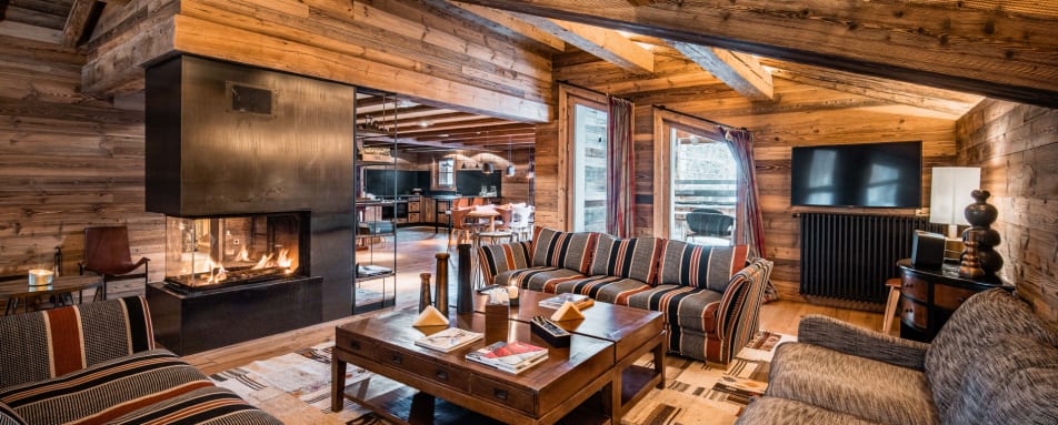Chalet Ambre is one of the five sumptuously appointed chalets located within La Mourra that comes with a chef and excellent facilities such as a private spa with indoor swimming pool and a home cinema room. Chalet Ambre is designed with reclaimed wood and warm, tactile fabrics.
