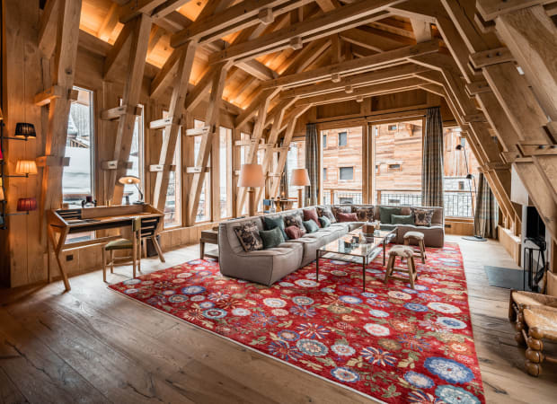 Chalet La Grange is one of the five sumptuously appointed chalets located within La Mourra that comes with a chef and excellent facilities such as a private spa with indoor swimming pool and a home cinema room. Chalet La Grange is designed with reclaimed wood and warm, tactile fabrics.