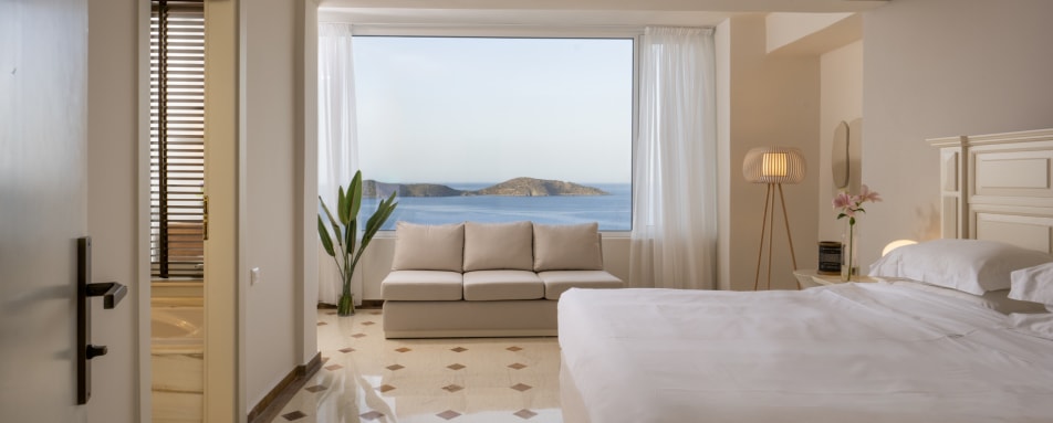 Perched on a tranquil hillside above Mirabello Bay, Elounda Gulf Villas sits just outside the charming village of Elounda in eastern Crete, with sweeping views across the Aegean and easy access to a private beach club and Agios Nikolaos.