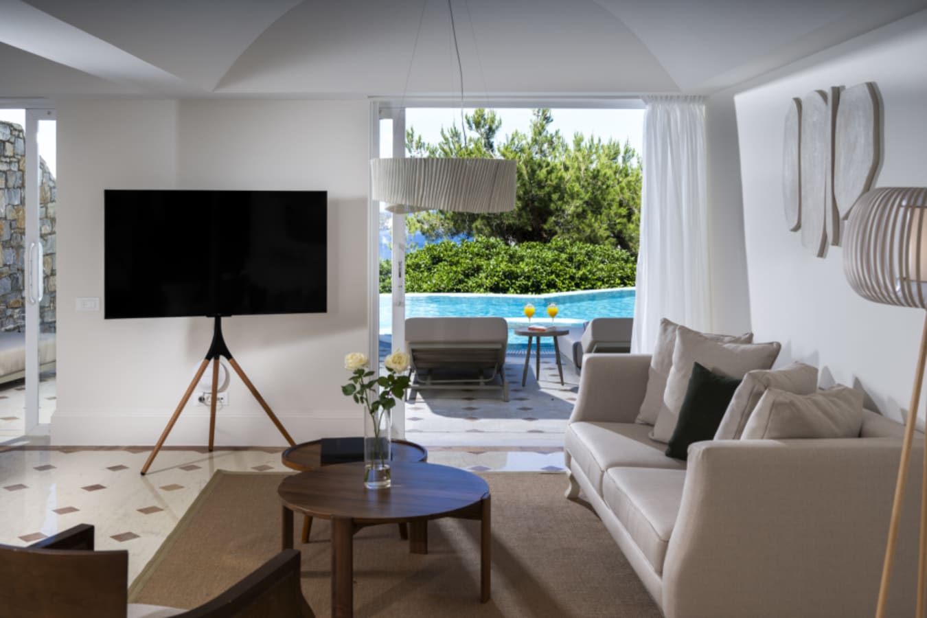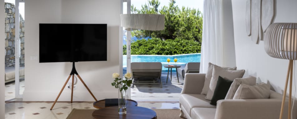 • Boutique villa-hotel with just 18 private villas and 15 suites, many with private infinity pools and sweeping Aegean views.