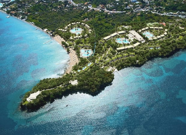 Ikos Odisia is 20 minutes drive from Corfu Airport (CFU) on the east coast of the island, just across from Ikos Dassia.