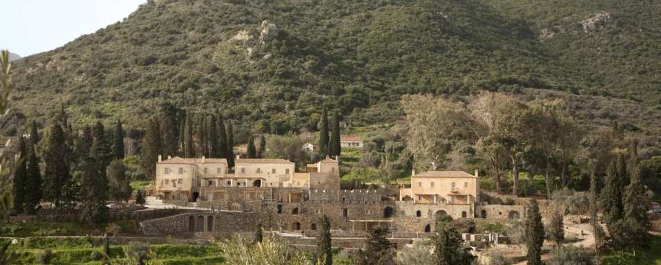 Kinsterna Hotel & Spa is a luxury hideaway nestled into the hillsides of Monemvasia in the Peloponnese with stunning views over the surrounding vineyards and the sparkling blue Aegean.