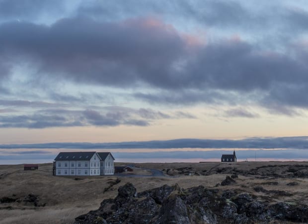 Located on a lava field overlooking the sea on the westernmost tip of the remote Snaefellsnes Peninsula, the iconic Hotel Budir enjoys one of the most dramatic and beautiful settings in this little explored region of Iceland.