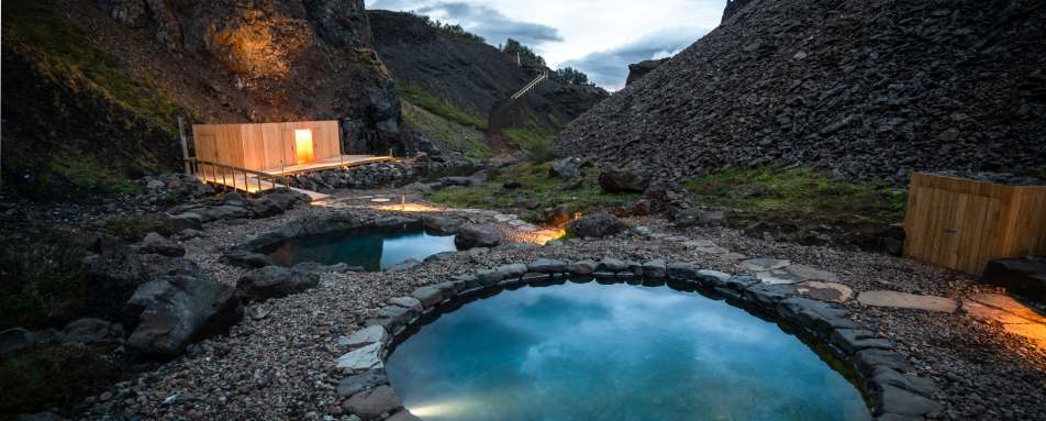 Explore the beauty of western Iceland with a gentle hike through Husafell canyon, passing by incredible scenery before reaching the Giljabod pools, hidden in the canyon, to enjoy a relaxing soak in the geothermally-heated water.