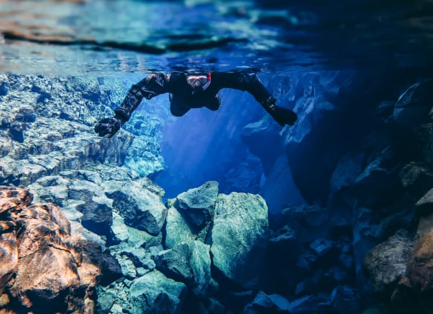 Explore the Golden Circle in a private tour, visiting Gullfoss, Geysir, and Þingvellir National Park. Today, dive into Silfra, snorkelling between two tectonic plates in crystal-clear glacial waters, an unforgettable, almost surreal experience. Share the exhilaration and tranquility of floating in this unique environment. Return to Torfhus Retreat in the evening for a quiet dinner by the fire, reflecting on the day’s natural wonders and the striking landscapes that make Iceland so iconic.Where to stay