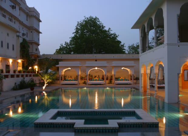For an intimate, heritage boutique retreat in a prime Jaipur location, Samode Haveli, a 225-year-old heritage residence, offers 50 unique rooms, a pool, spa, and gym, the perfect base to explore the Pink City.