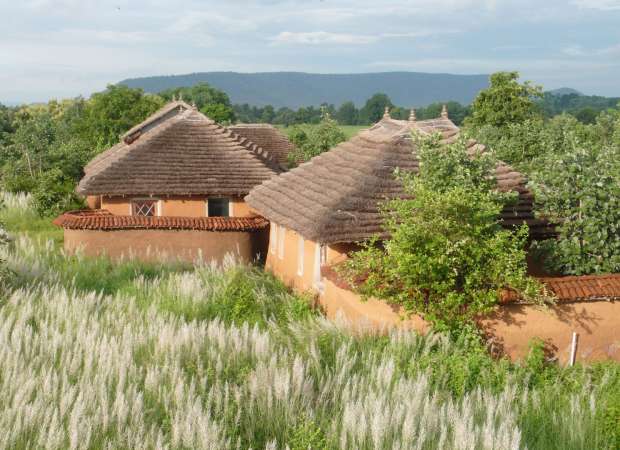 Nestled on the banks of the Ken River, the lodge offers sweeping views across unspoilt countryside, where riverine forests give way to open fields alive with birdsong. The cottages, built entirely from natural materials using local techniques, combine rustic simplicity with comfort. Thick mud walls keep interiors cool, while thatched roofs and handmade furnishings lend an authentic village aesthetic.