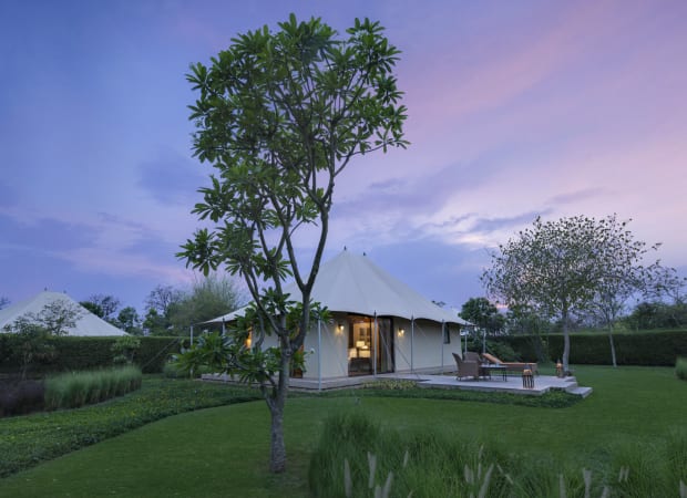 Samode Safari Lodge is an intimate, 12-villa retreat on the edge of Bandhavgarh National Park, where luxury meets the thrill of the wild. Enjoy daily safaris with expert guides, immersive wildlife experiences, and villas inspired by local architecture.