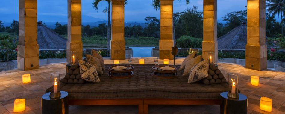 Amanjiwo is a stunning luxury boutique property in the rural heartland of Central Java. It is located within a natural amphitheatre, with the limestone Menoreh Hills rising directly behind, the Kedu Plain to the front and four volcanoes – Sumbing and Sundoro to the west and on the eastern horizon, Merbabu and Merapi. Amanjiwo looks out onto the 9th Century Borobudur, the largest Buddhist sanctuary in the world and the architecture and style of the hotel reflects this unique location.