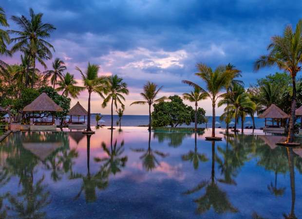 The Oberoi Beach Resort, Lombok is a luxury hideaway resort located on the secluded northwest coast of Lombok. The elegant pavilions and villas use local materials and have beautiful views of the surrounding tropical gardens and ocean.