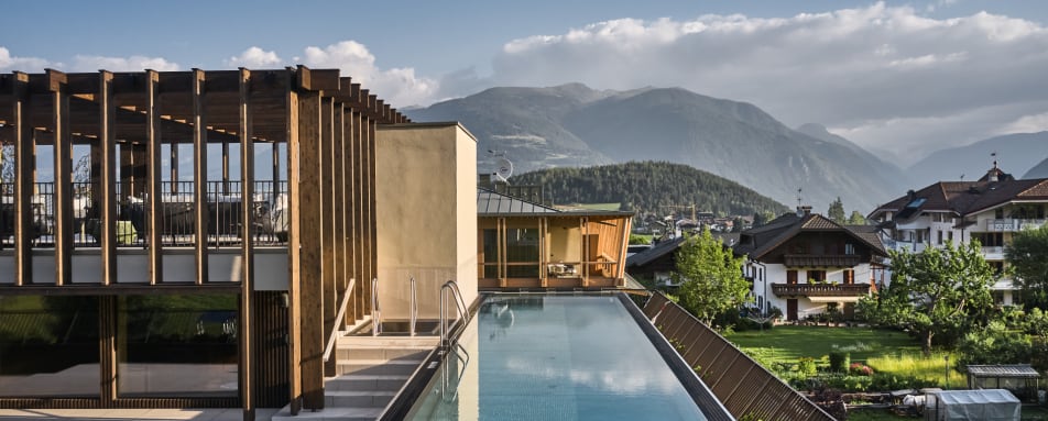 The hotel’s location places you mere steps from the valley station of Kronplatz, the ultimate playground for outdoor enthusiasts. Whether skiing the famed Sellaronda circuit in winter or exploring lush hiking and biking trails during spring and summer, the region’s natural beauty is always within reach. The panoramic views from the mountain summit, overlooking the dramatic Dolomites, provide an unforgettable backdrop for your holiday.