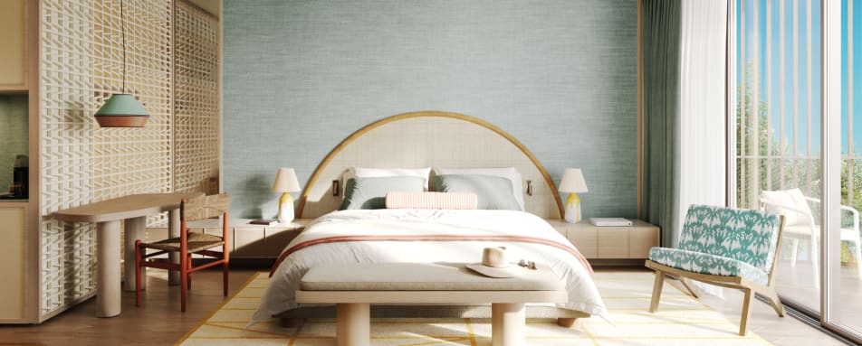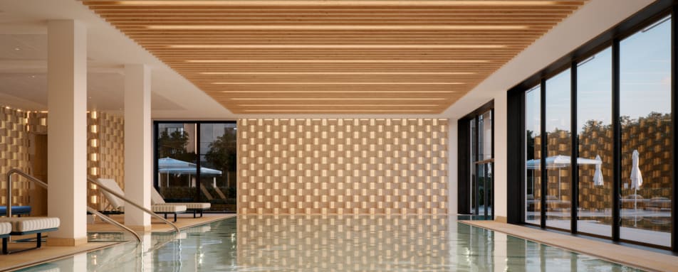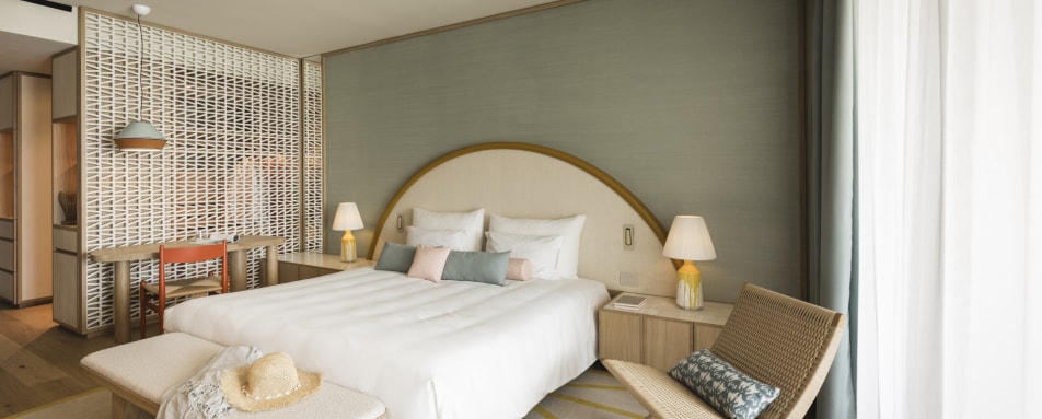 The resort comprises 97 elegant hotel rooms and suites, each curated for comfort and calm, plus 170 design-led private residences for longer stays. Whether you’re wrapping up a day with a glass of local wine on your balcony or slipping into the serenity of the spa, there is a shared sense of understated luxury throughout. Suites are generously proportioned, with thoughtful touches such as parquet floors, refined bathrooms, comfortable living areas, and in many cases, private balconies or terraces that open onto pool, park or lake views.