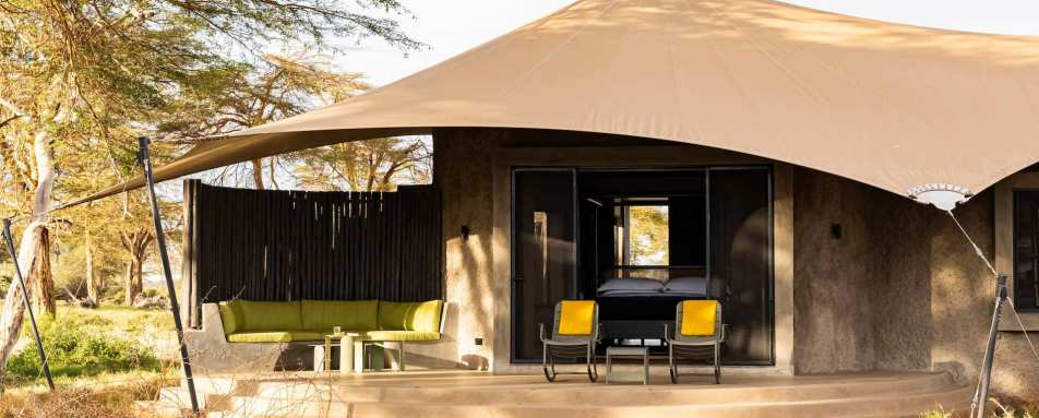 Angama Aboseli is set in the heart of Kimana Sanctuary surrounded by a lush fever tree forest and framed by the majestic Mount Kilimanjaro.