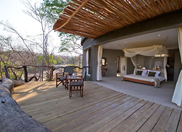 High up on the banks of the perennial Shire River, Mkulumadzi, the newest lodge from Robin Pope Safaris, can be found. The lodge is one of the most luxurious in Malawi and has just eight beautiful, spacious chalets, each with a wonderful view over the river and the bush beyond it. These views are given centre stage, with one side of the rooms being completely open, with a large veranda on which to relax and watch game. Inside, each room has a king size bed shrouded in walk-in mosquito net, and each chalet is air-conditioned for those hot October days. The bathrooms are nothing short of spectacular with a bathtub with a view!
