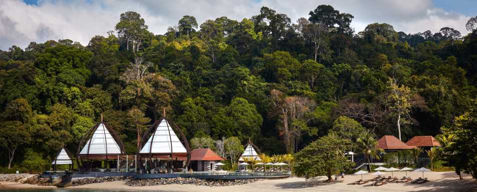 The Ritz Carlton Langkawi is set around two sandy coves overlooking the Andaman Sea, and surrounded by 10-million-year-old rainforest. The resort aims to embrace its natural surroundings, as well as incorporate Malaysian heritage into its design.
