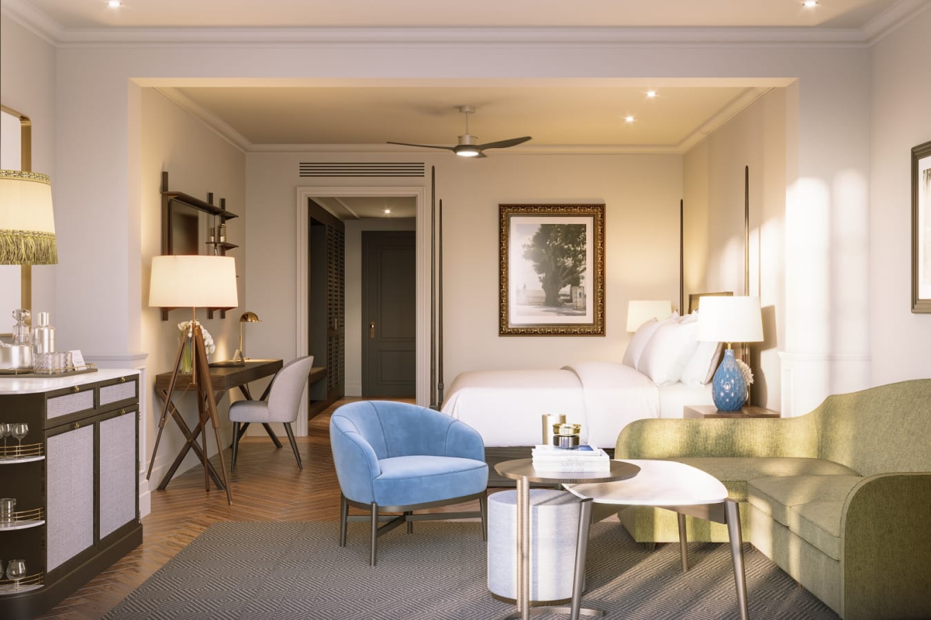 Expect high ceilings, mahogany wood panelling, sparkling chandeliers, plush sofas, low-slung wicker chairs, bistro booths, original artwork and delightful courtyard boasting swaying palms and gurgling fountains. The hospitality is exceptional with an experienced concierge and personal butler service to ensure the perfect stay. Despite the luxe vibe, sustainability is also a major consideration with no single-use plastic.