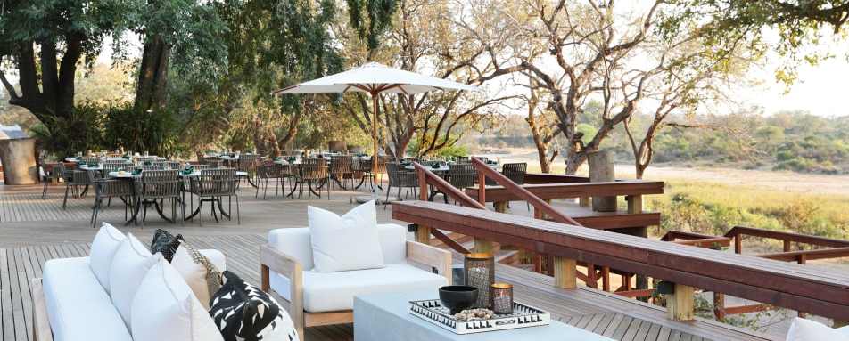 Mala Mala Camp is perched along the Sand River in the exclusive Mala Mala Game Reserve in South Africa's wild Greater Kruger.