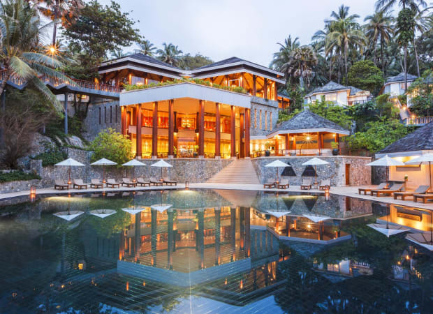 The Surin is set amidst coconut palms on a hillside overlooking Pansea Bay, with its crystal clear waters and soft white sand.