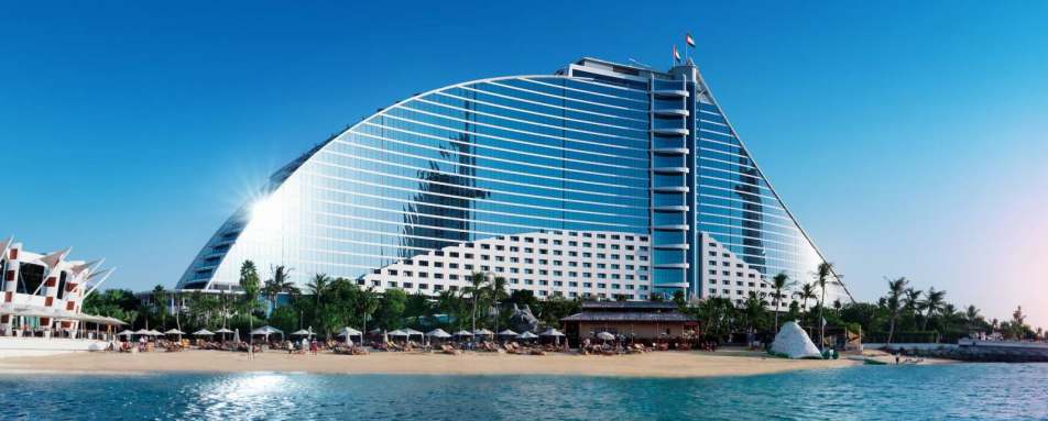 A modern resort with a full range of facilities for all the family, set on the famous Jumeirah Beach. The Jumeirah Beach Hotel is the shape of a breaking wave, with an interior theme of the four elements of earth, water, fire and air.