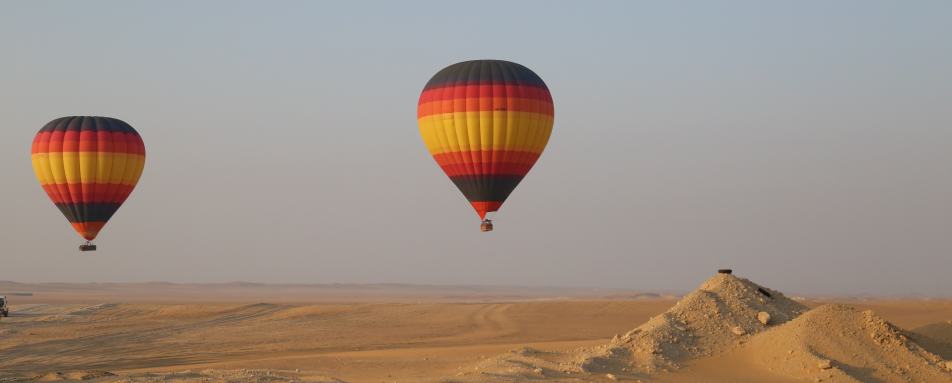 Experience an unforgettable sunrise over the desert dunes whilst you soar over the golden sands in a hot air balloon.