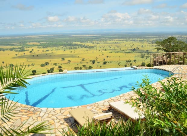 Katara Lodge is perched on an escarpment overlooking the Queen Elizabeth National Park in western Uganda.