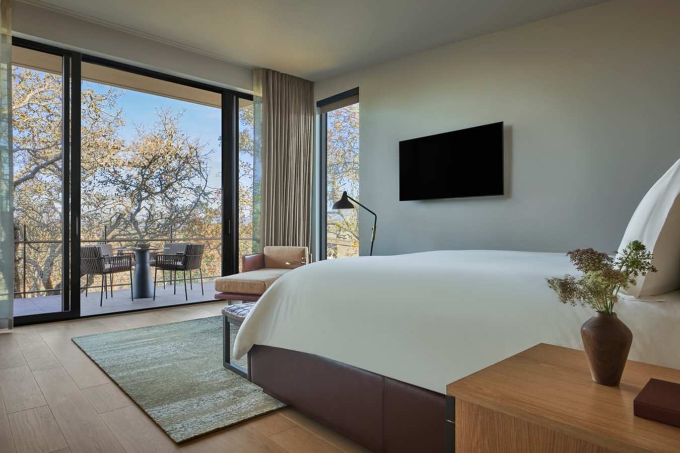 Each of the contemporary guestrooms and suites have been constructed with an environmentally conscious design, built with organic materials that include stone, wood and copper; and feature floor to ceiling glass windows, allowing the natural light to stream in. Each room and suite also features an ensuite marble bathroom with a separate bathtub and walk-in shower, whilst the suites also boast a private terrace, complete with outdoor firepit.