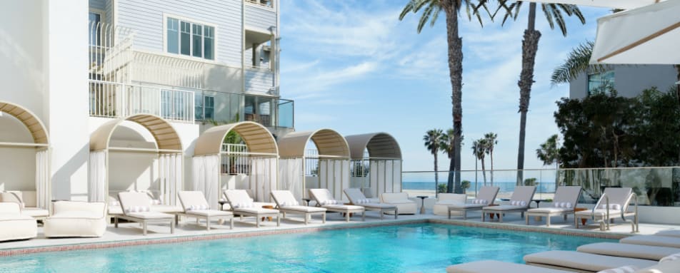 A beachfront hotel steps from the ocean with a heated pool, lounge, fitness center, dining by Raphael Lunetta, event spaces, a private dog park, e-bikes, and beach kits.