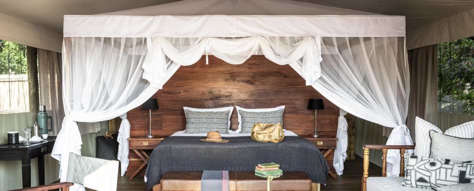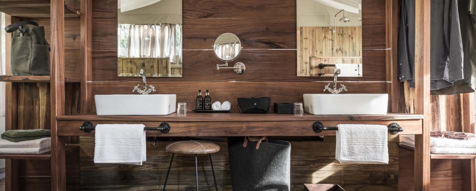 The traditional style tents feature an attractive daybed, plush beds with white linens, textured cushions, oiled teak furniture, overhead fan, mosquito nets, indoor bathroom with rainfall shower, outdoor slipper bath, private veranda, and modern amenities, while still upholding a true safari experience. Each tent includes single beds which can be configured to create a King or Twin Room. There is also a complimentary laundry service.