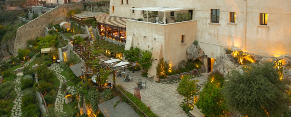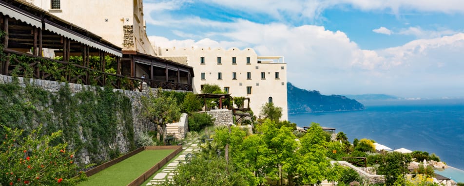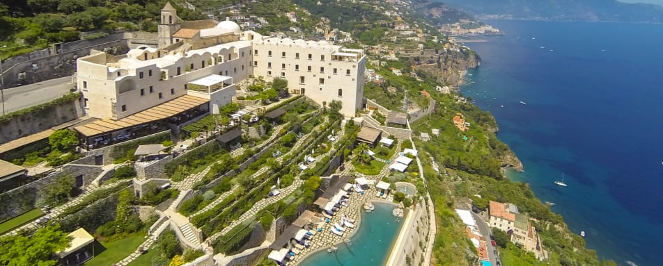 This painstakingly and lovingly converted 17th Century Monastery is now a stunning boutique hotel perched on a cliff edge above the Bay of Salerno in the fishing village of Conca dei Marini. This unique hotel offers 20 rooms and suites that all come with sea views. A local Neopolitan designer has collaborated with the owner to create an elegant ambiance graced by timeless Italian antiques. Each room still exudes the sense of tranquillity where a nun once stayed—a totally private and intimate retreat bathed in the angelic sunlight of the Amalfi Coast, with an incomparable view of a simply breathtaking stretch of coastline.