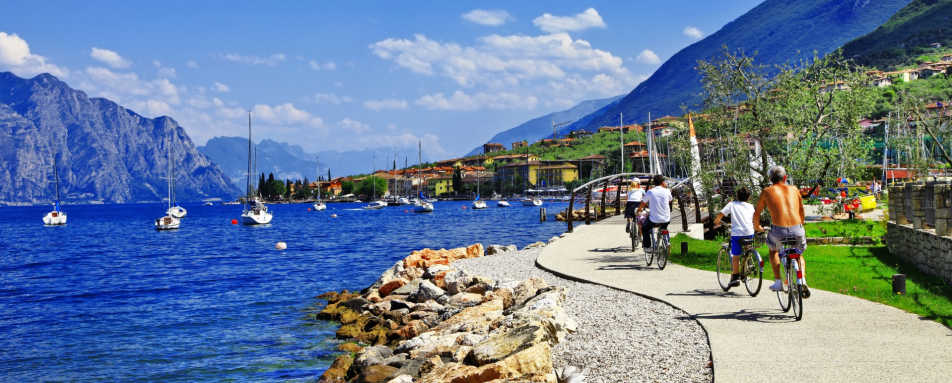 Taking in the breath-taking landscape as you jump on two wheels for a guided e-bike adventure along one of the many cycling paths around Lake Garda.